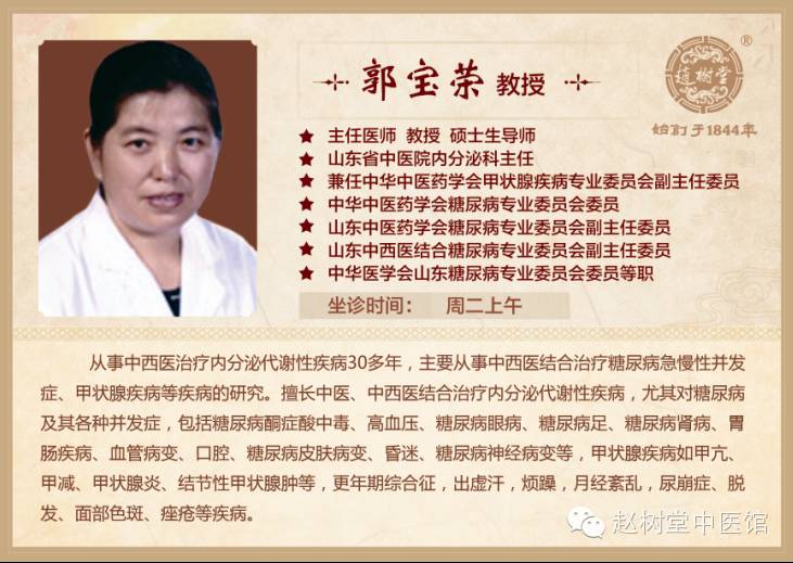 专家简介:郭宝荣,山东省中医院内分泌内科主任,主任医师、教授、硕士生导师